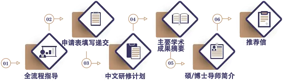 - 准备中文研修计划、主要学术成果摘要、硕/博士导师简介、推荐信等书面材料